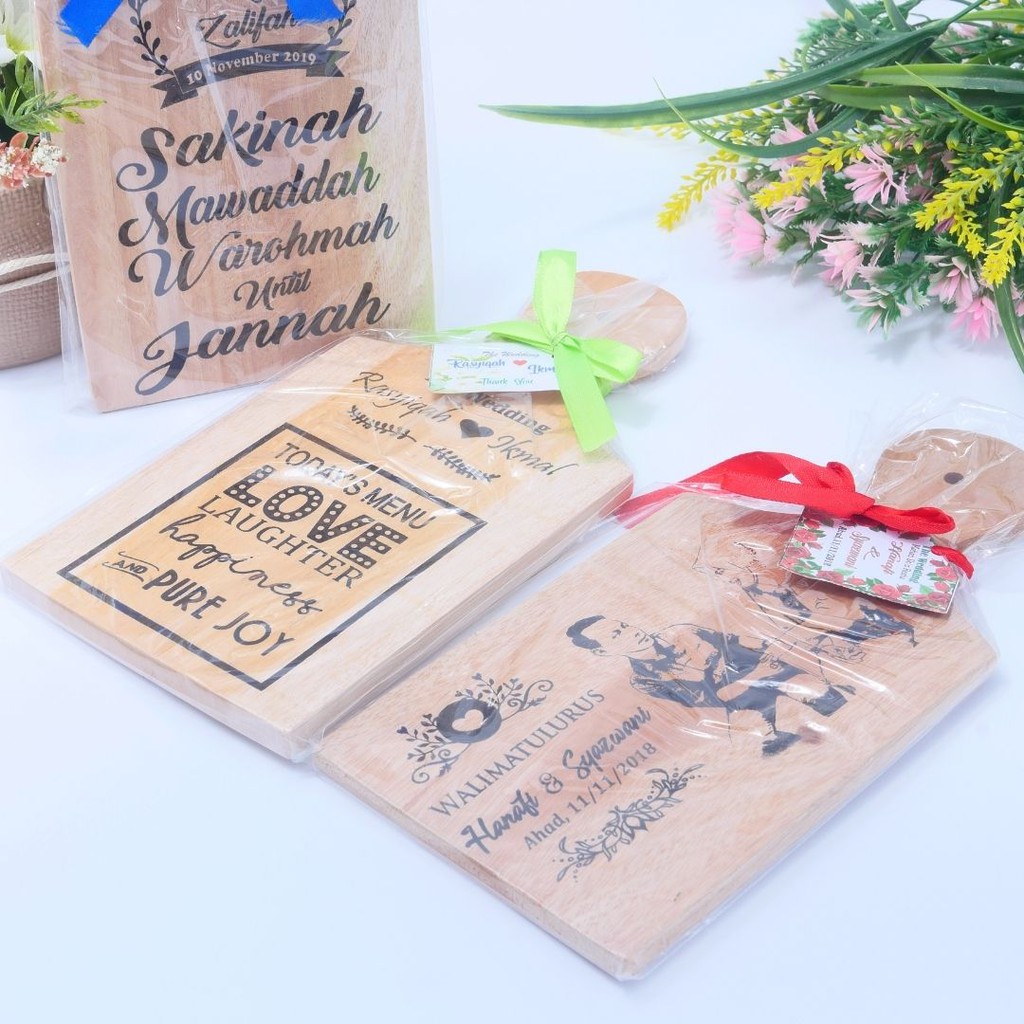 [50pcs] Doorgift Kayu Papan Pemotong Cutting Board BESERTA CETAKAN Segiempat Saiz +- 24cm x 11.5cm - Doorgift Unik